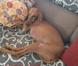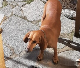 -Carattere: è molto tranquillo, va d’accordo con cani maschi e femmine e con i gatti, sa andare al guinzaglio e in auto senza problemi.
