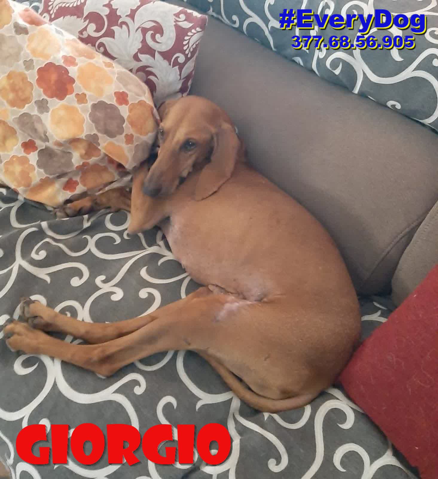 Quando è arrivato, la denutrizione aveva lasciato il segno: il suo pelo e la sua pelle erano danneggiati, le zampe avevano perso tono muscolare, e la sua milza era ingrossata. Ma grazie a un anno di cure amorevoli, Giorgio è rinato. La sua salute è migliorata notevolmente, anche se è rimasto positivo alla Leishmania, fortunatamente ora stabilizzata.