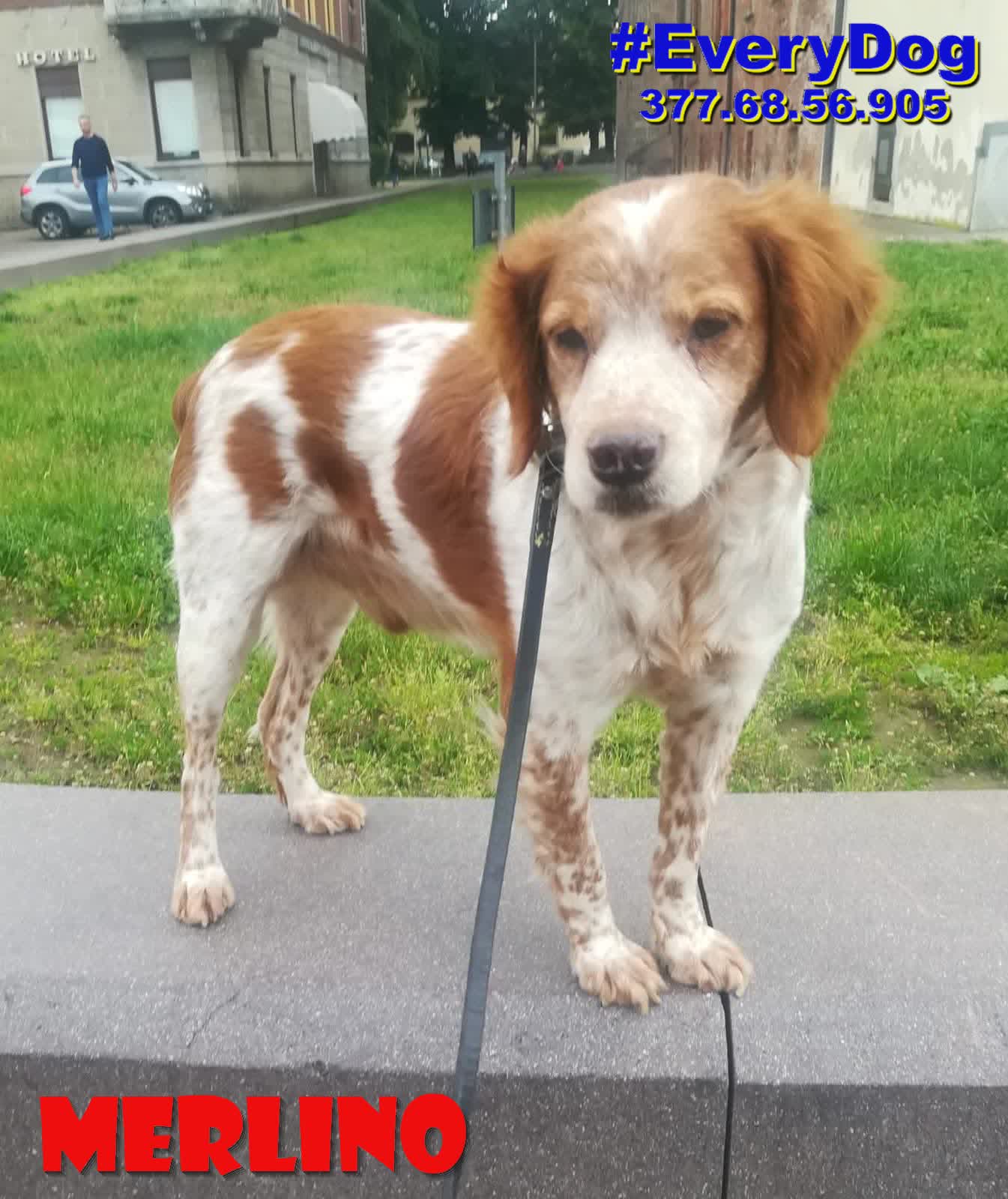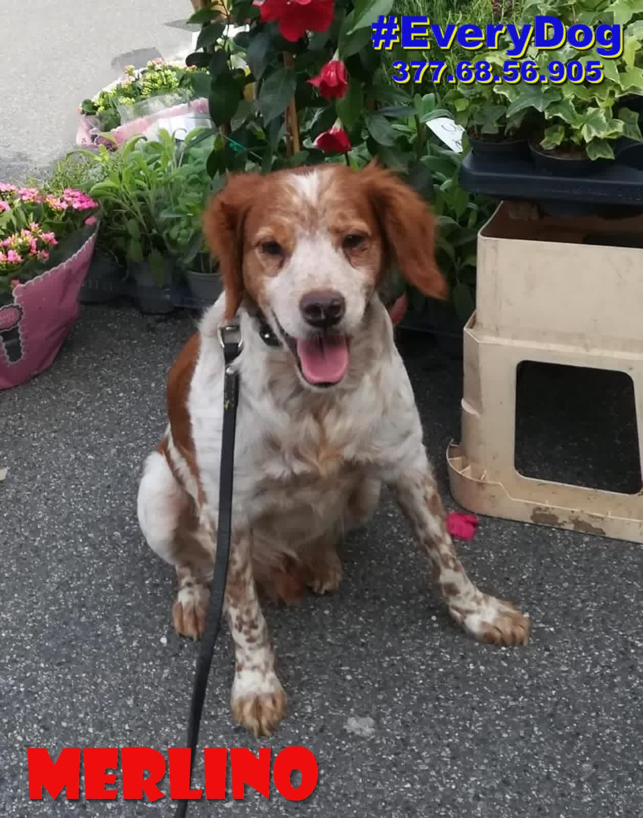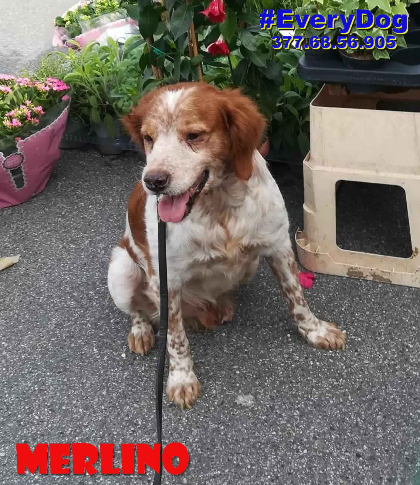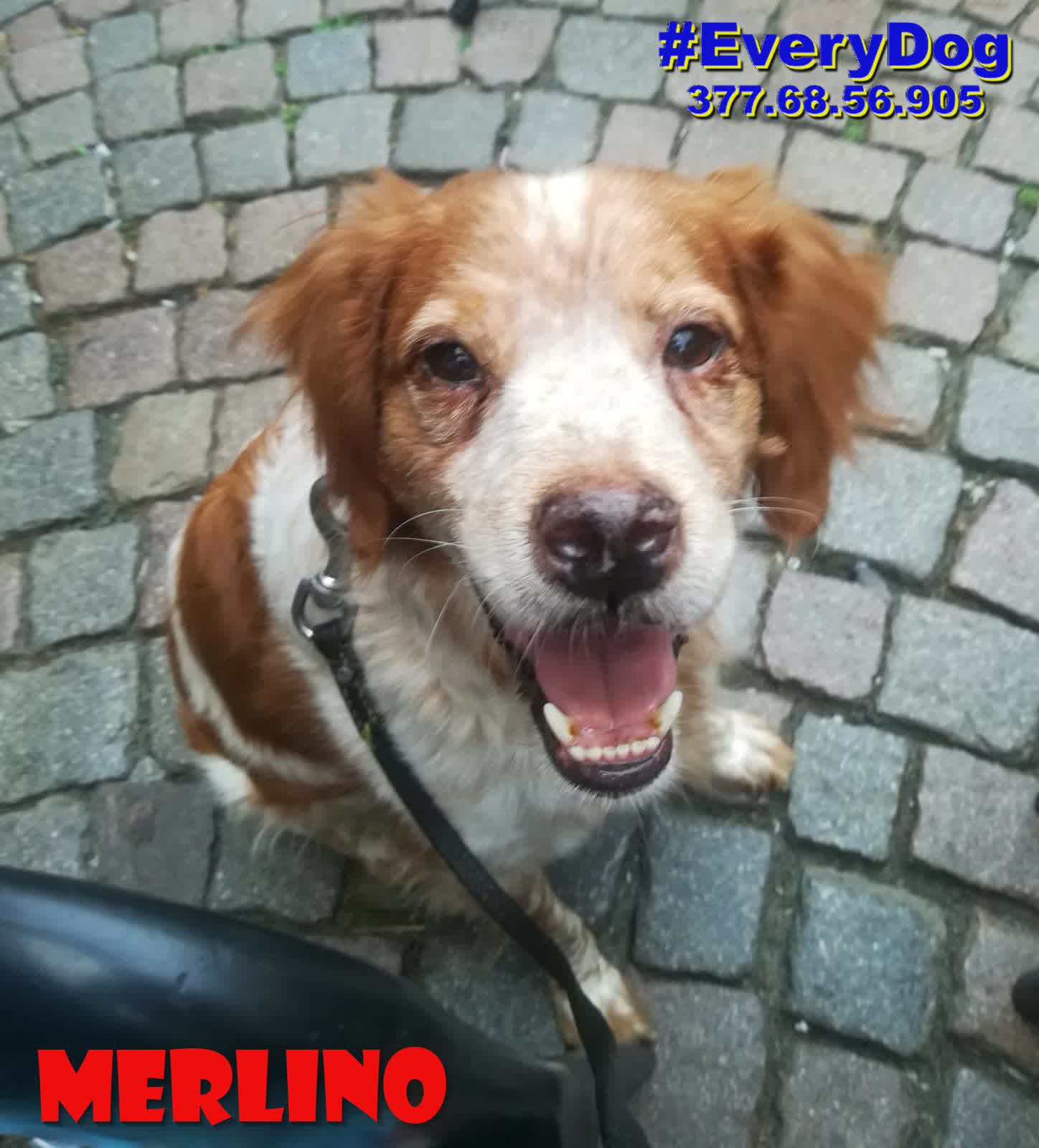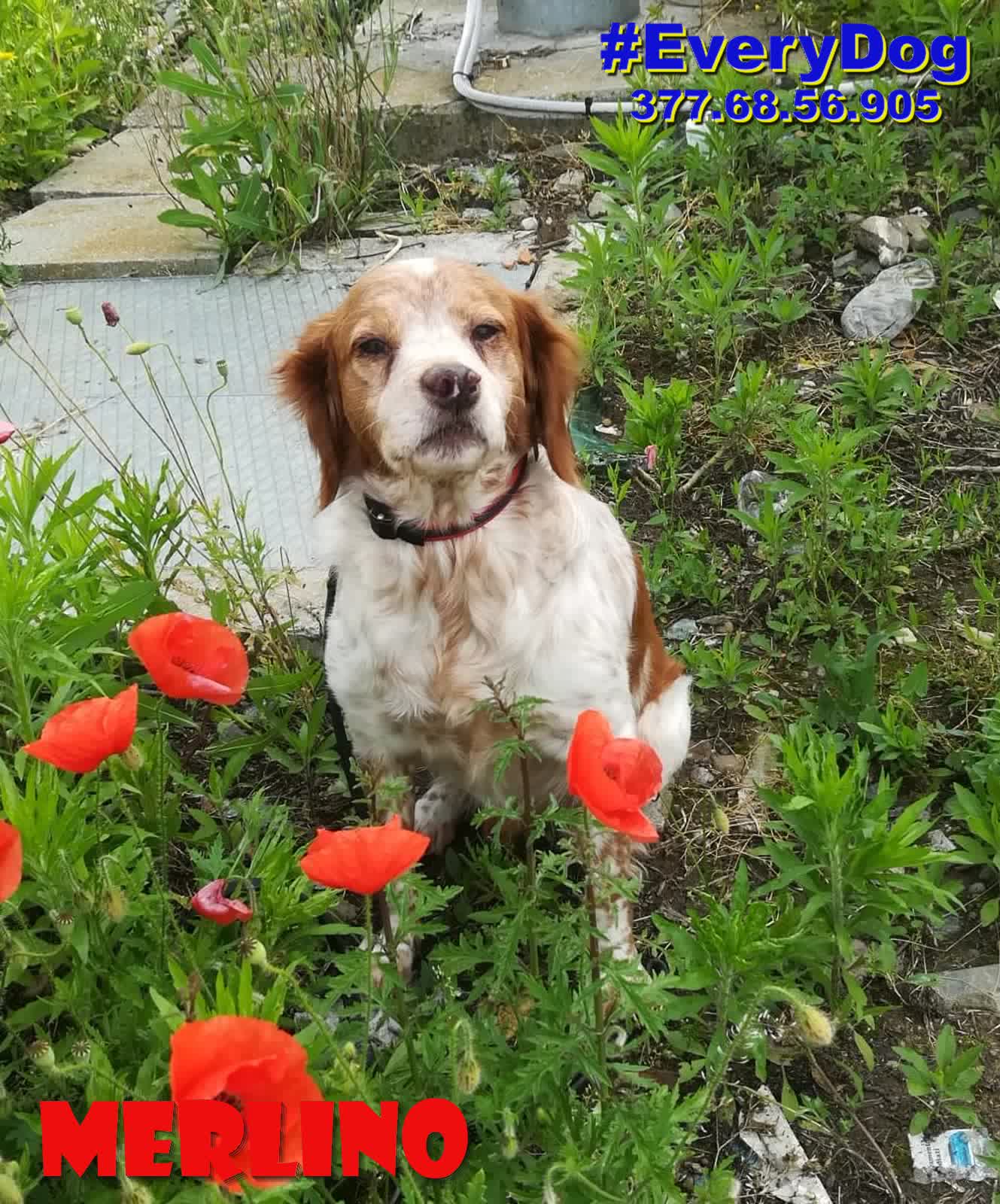 Merlino è arrivato, quasi in coma, al Nord a Dicembre 2023, grazie all’aiuto delle Mamme a distanza di EveryDog.