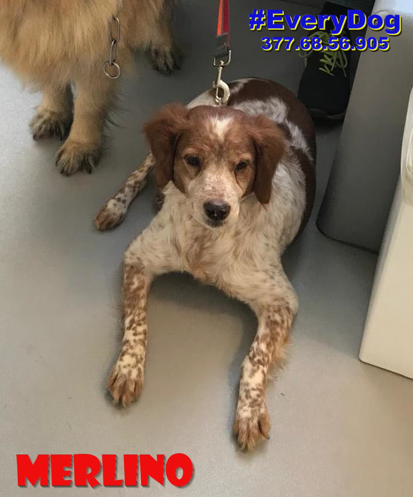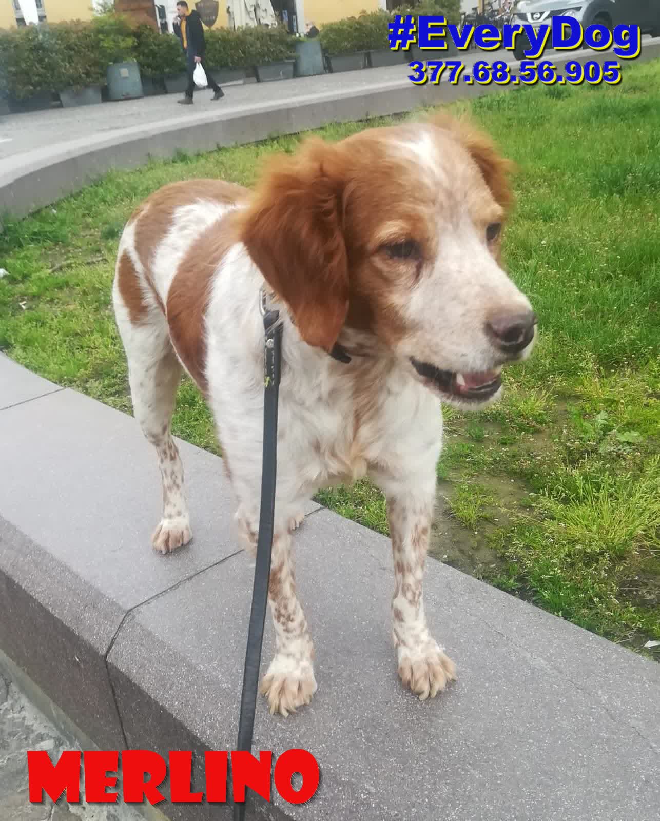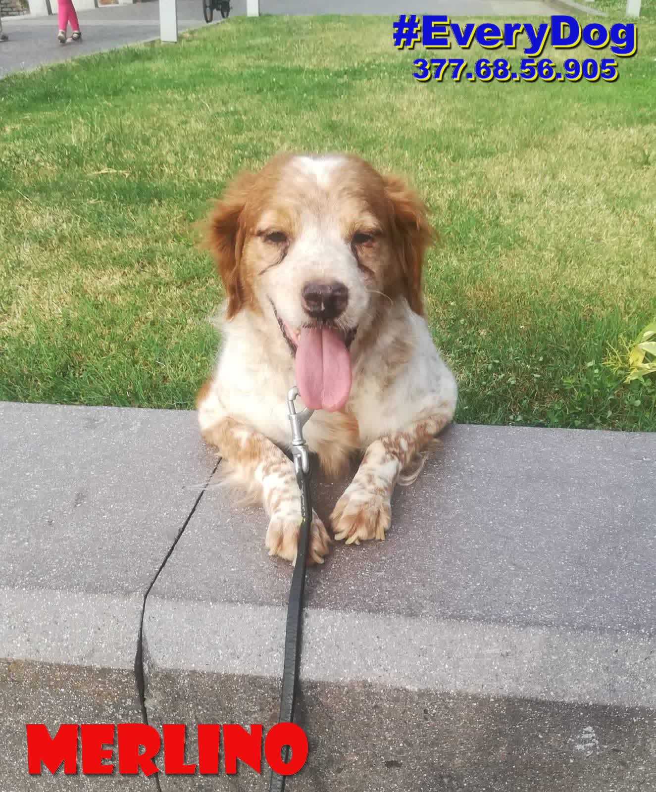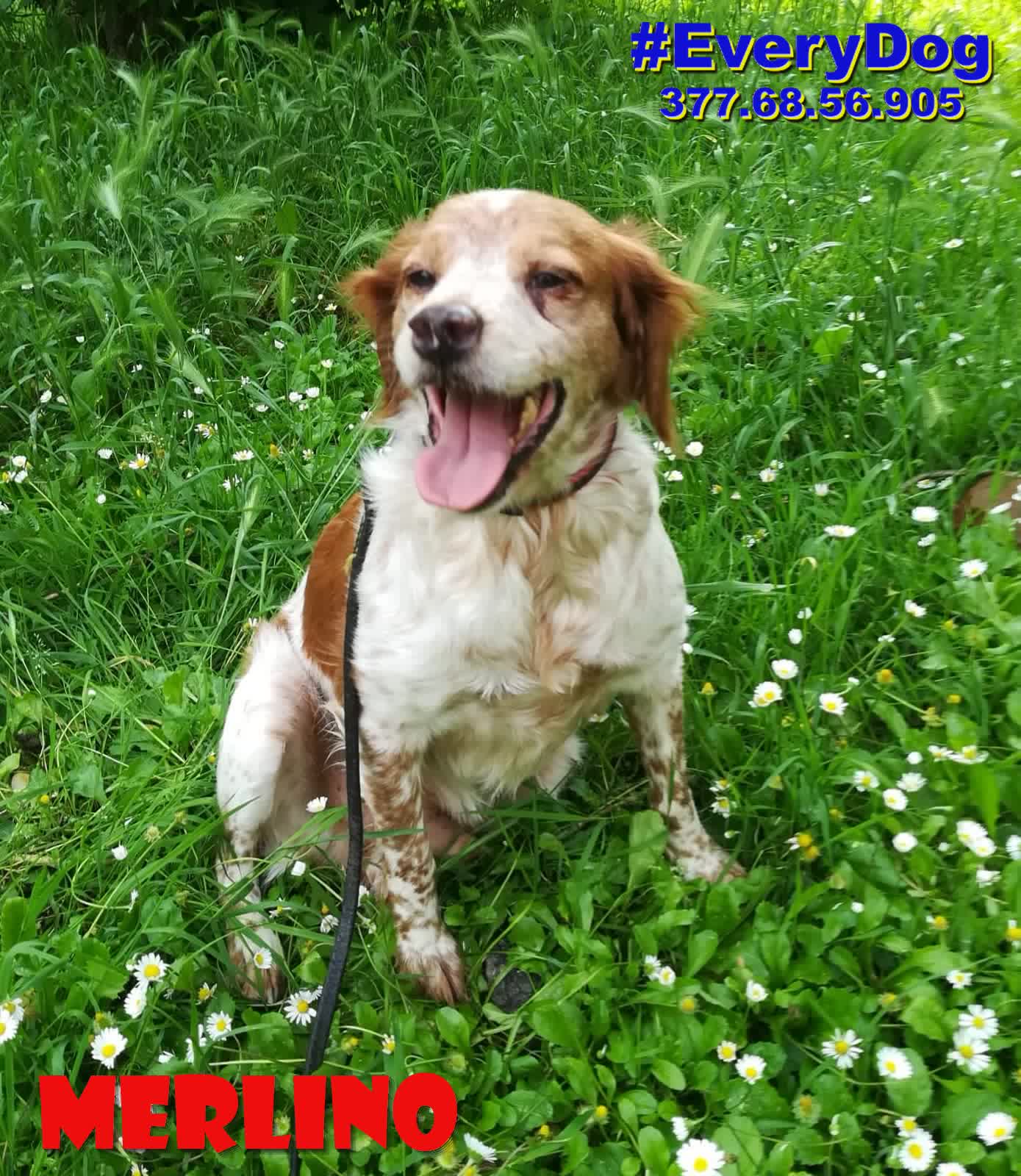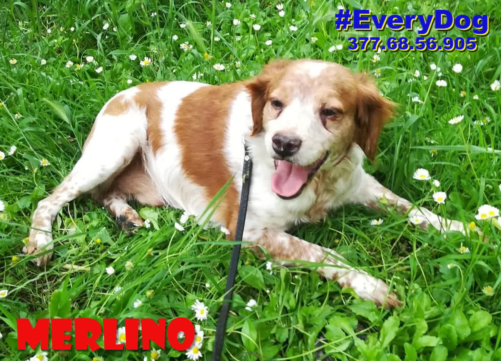 Merlino è arrivato, quasi in coma, al Nord a Dicembre 2023, grazie all’aiuto delle Mamme a distanza di EveryDog.
